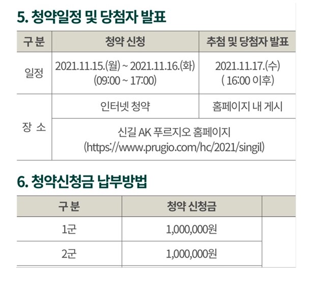 청약신청일정 > 2021년 11월 15일 ~ 2021년 11월 16일
